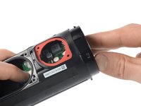 To pry up the tweeter, insert the tip of a spudger between the battery connector and the connector stem of the tweeter and gently press the tweeter upwards to push the stems out of their contact springs.